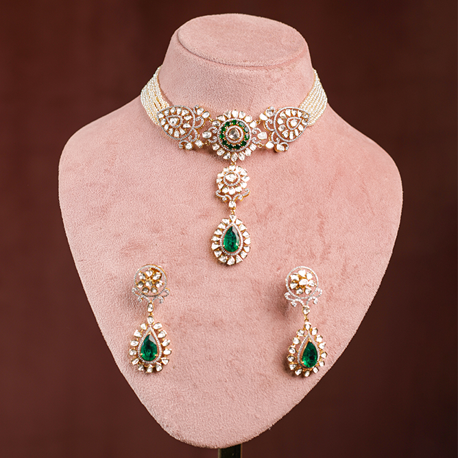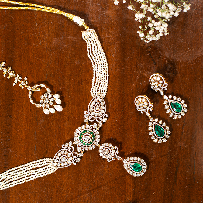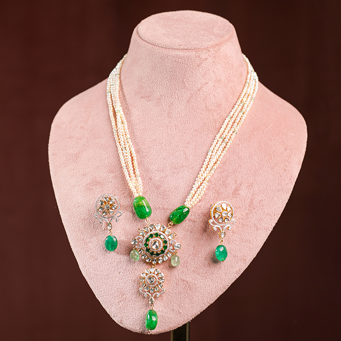 Jardina is a celebration of lush, uninterrupted green—an ode to nature in its most opulent form. This enchanting Tanmania is adorned with charming little duck motifs, each delicately highlighted with vivid emeralds that bring the design to life.